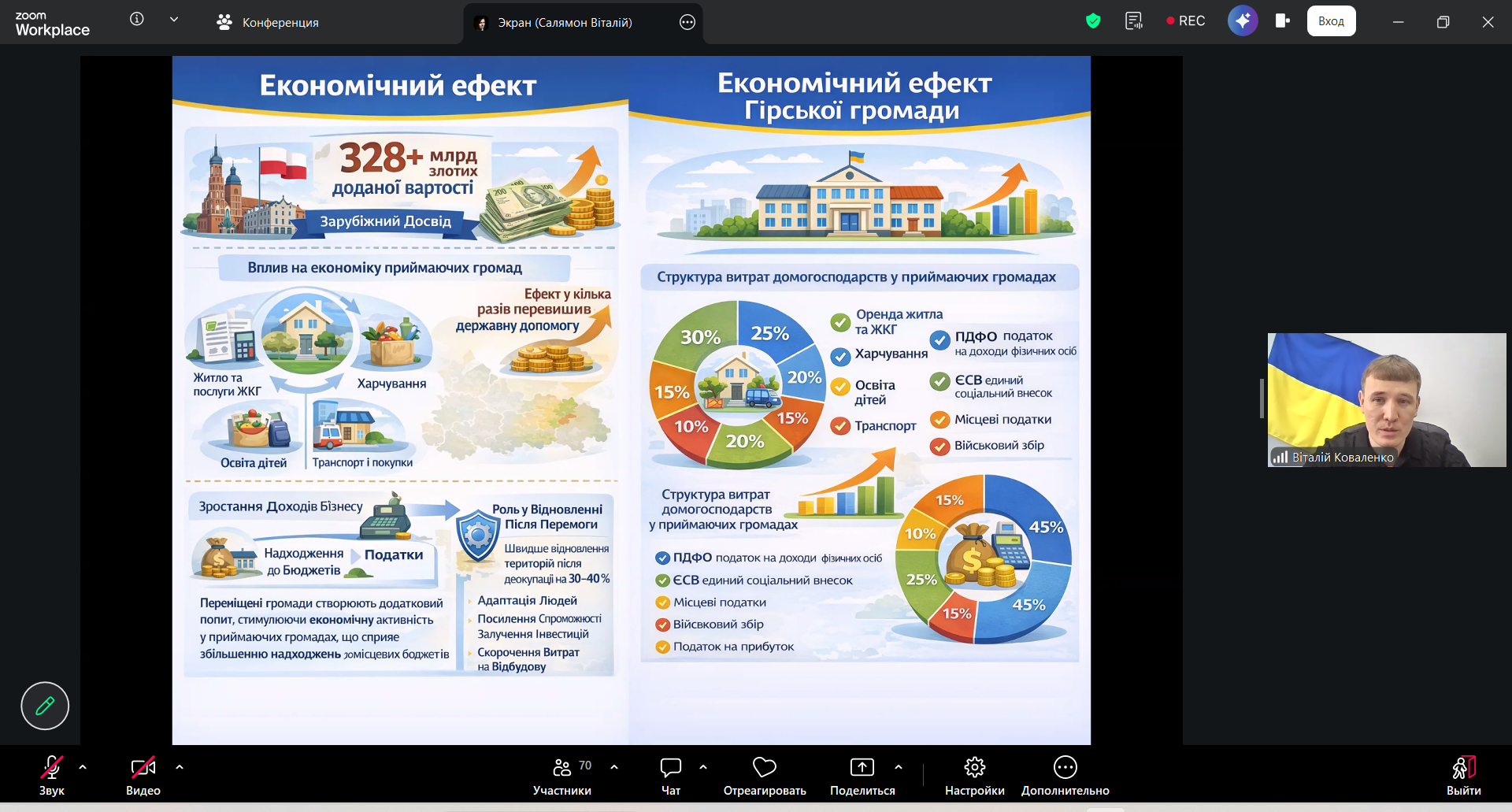 Коваленко Віталій Петрович, начальник відділу освіти, культури, молоді та спорту, Гірська міська військова адміністрація, Сіверськодонецького району Луганської області, м. Київ, Україна. Тема доповіді: «Переміщені громади як чинник збереження соціально-економічного потенціалу територій»;