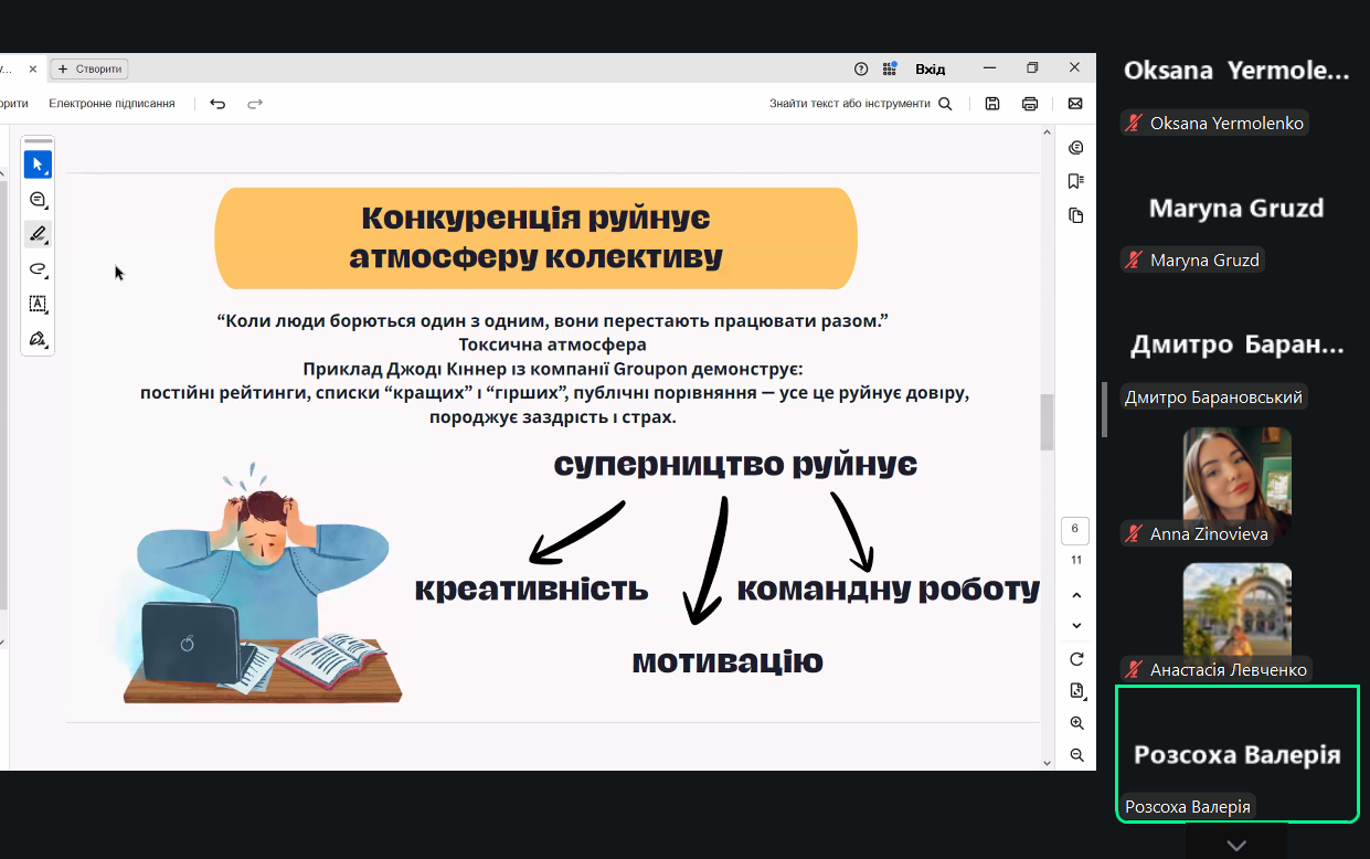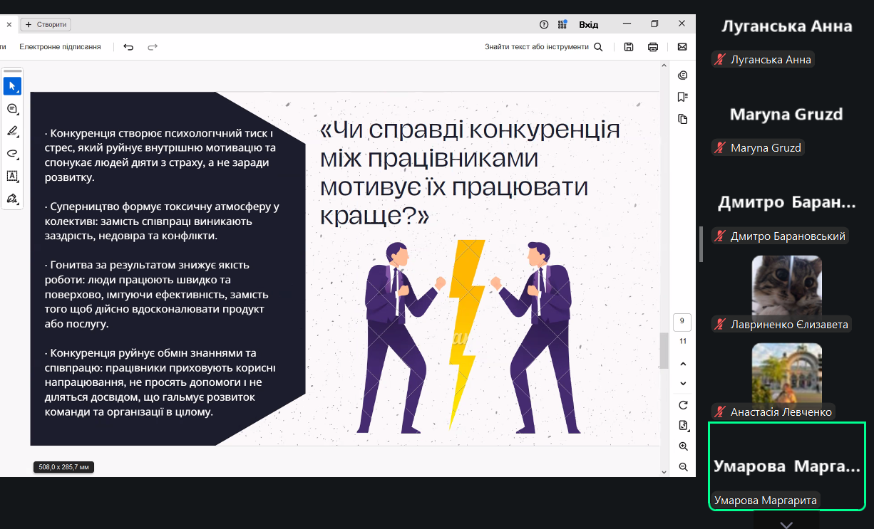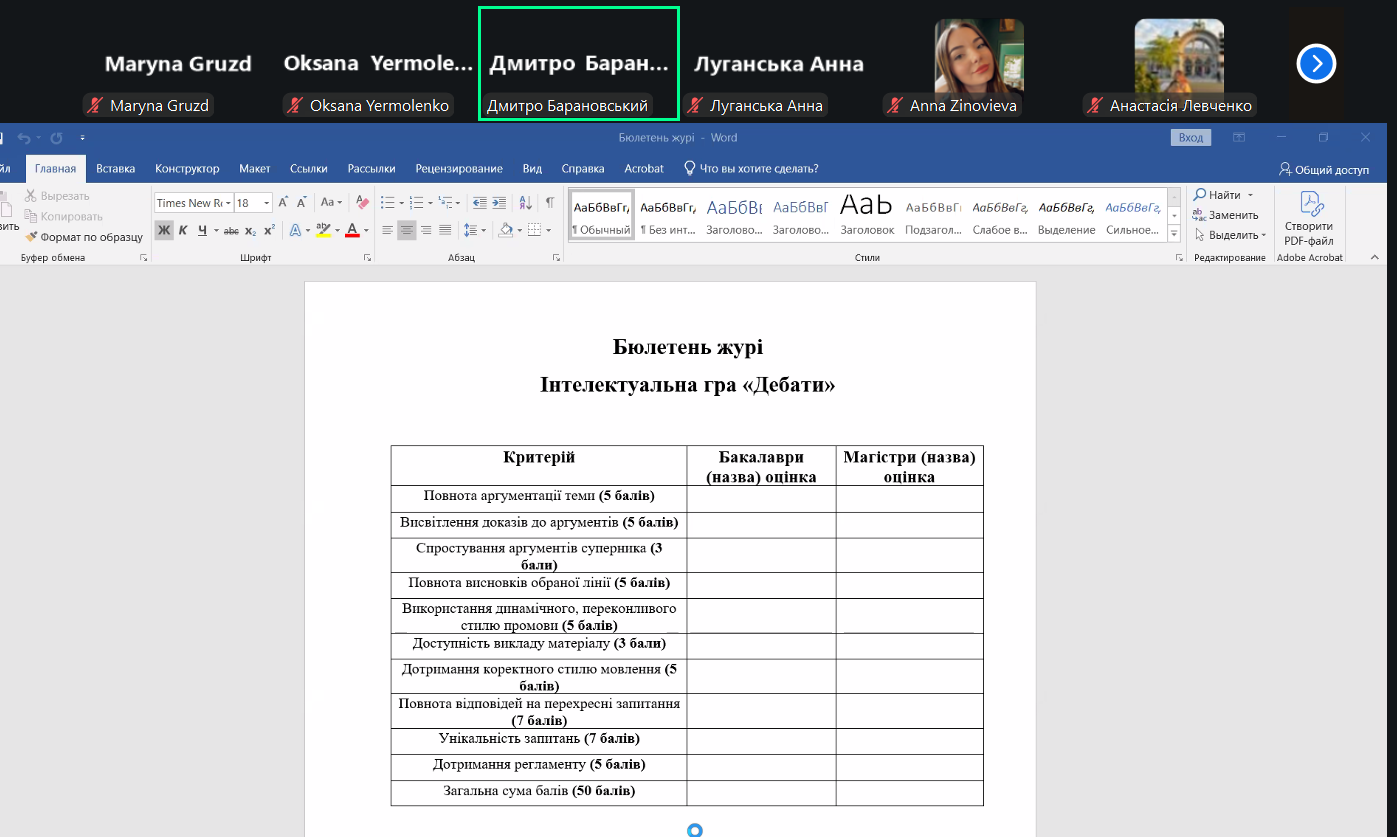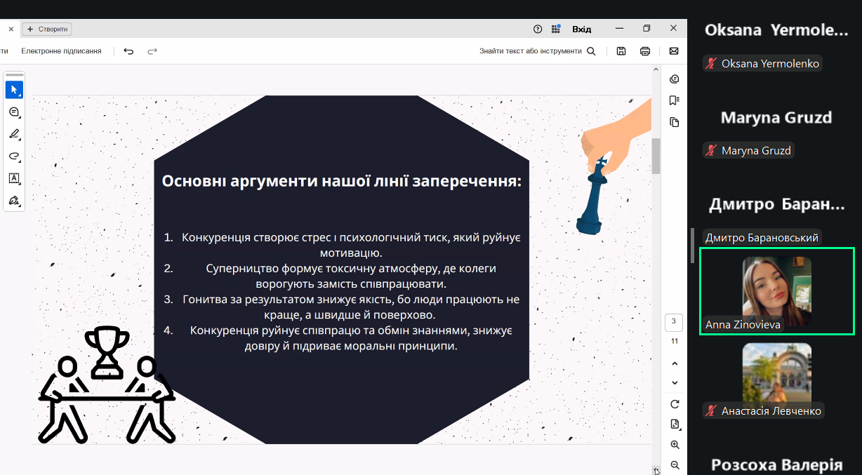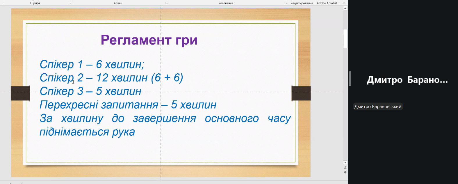 Дві команди слухачів: бакалаври 4 курсу освітньої прогами «Публічне управління» проти магістрів 1 року навчання освітньої програми «Публічне адміністрування» вступили у словесну дуель, де слова перетворювалися на стріли аргументів, а логіка – на щити переконання.