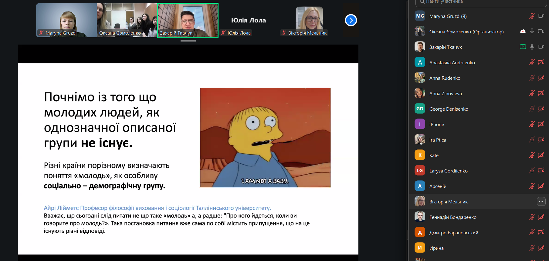 Особливу увагу лектор приділив питанням становлення молодіжних рухів, розвитку молодіжних організацій та трансформації підходів до роботи з молоддю у різних країнах. Також було обговорено сучасні виклики, що постають перед молоддю, та важливість створення умов для її активної участі у громадському житті.