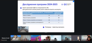 Досвід проведення єдиного державного кваліфікаційного іспиту за спеціальністю D4 «Публічне управління та адміністрування» презентували Марина МРУГА, керівник експертної групи з питань інтеграції до європейського простору вищої освіти та забезпечення якості освіти директорату вищої освіти та освіти дорослих МОН України та Тетяна ІЩЕНКО, директор ДУ «Науково-методичний центр вищої та фахової передвищої освіти».