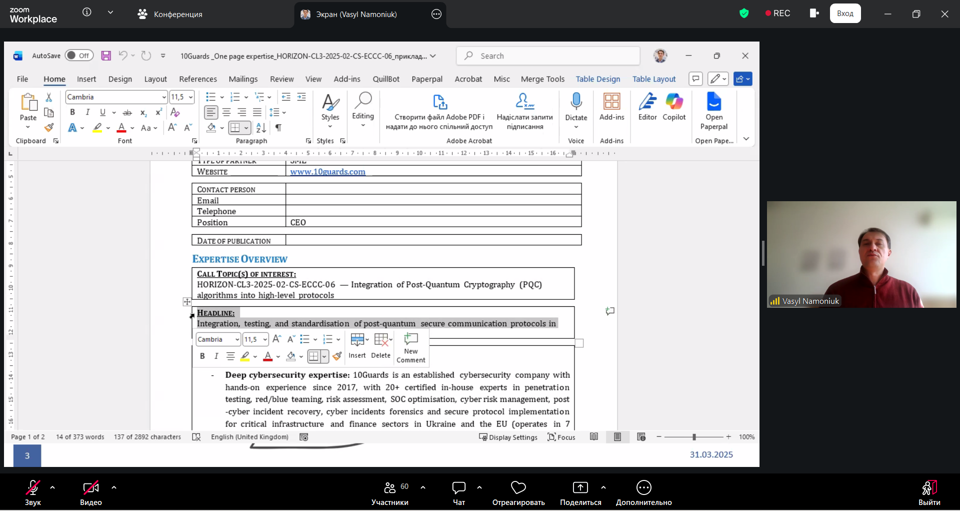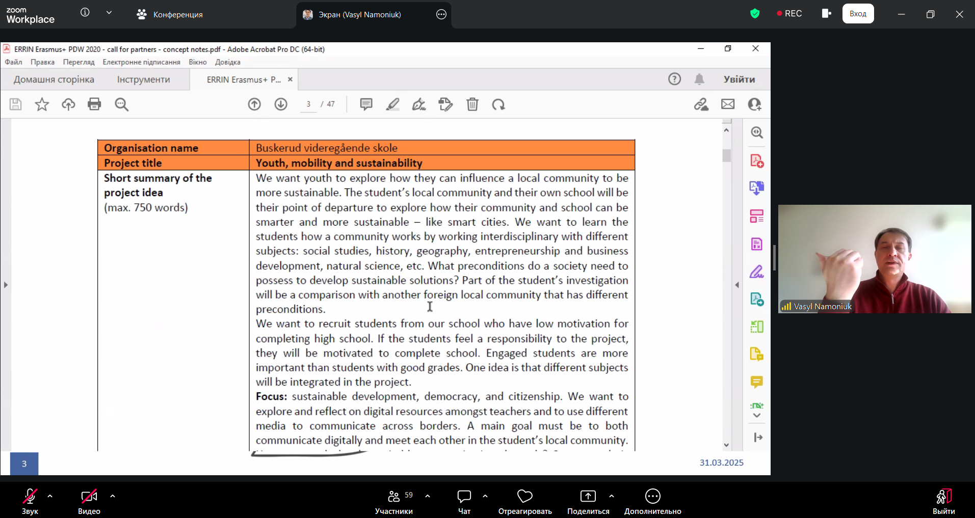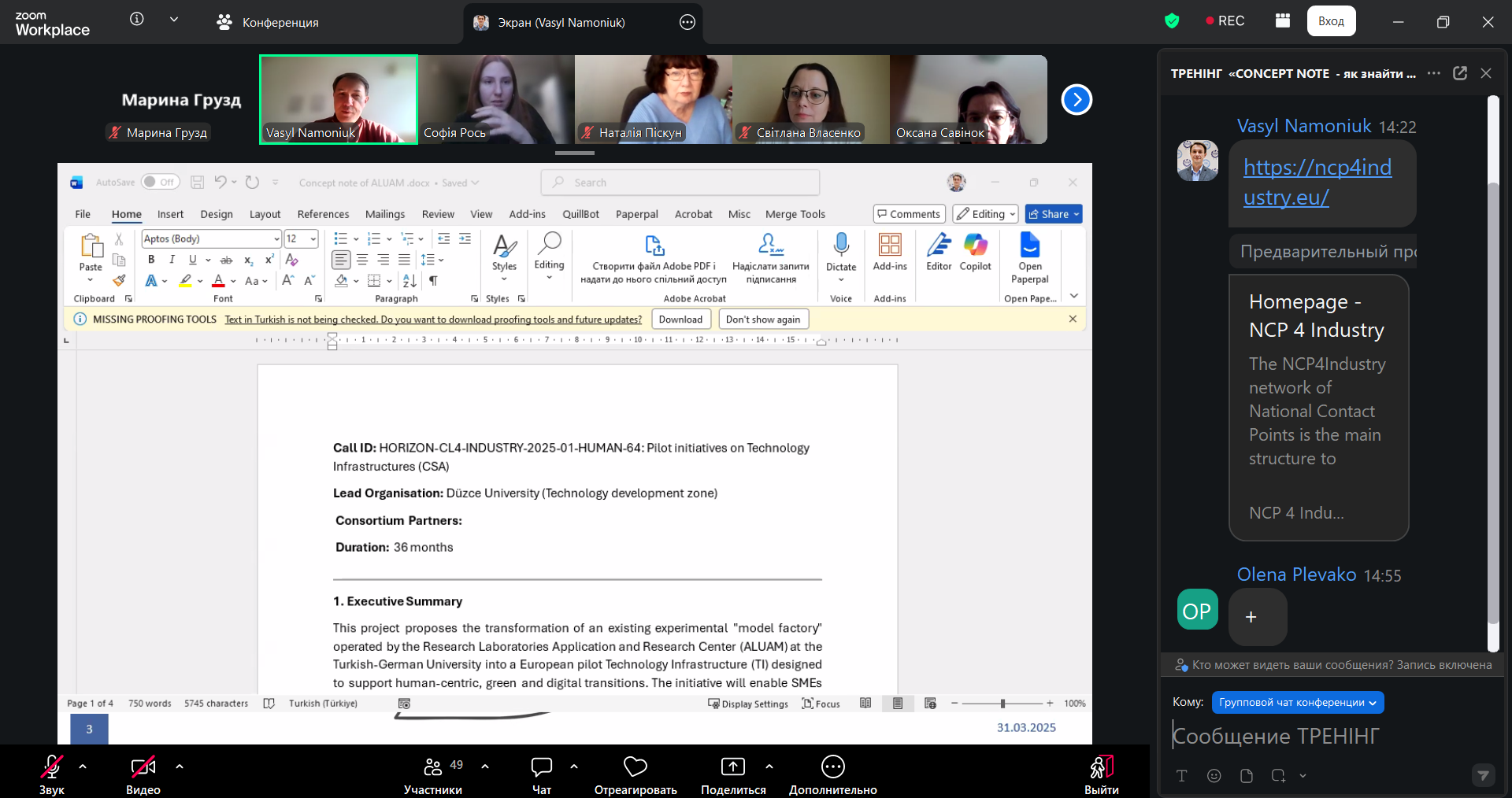 25 березня 2026 року на платформі Zoom було проведено тренінг «CONCEPT NOTE – як знайти своє місце в консорціумі».