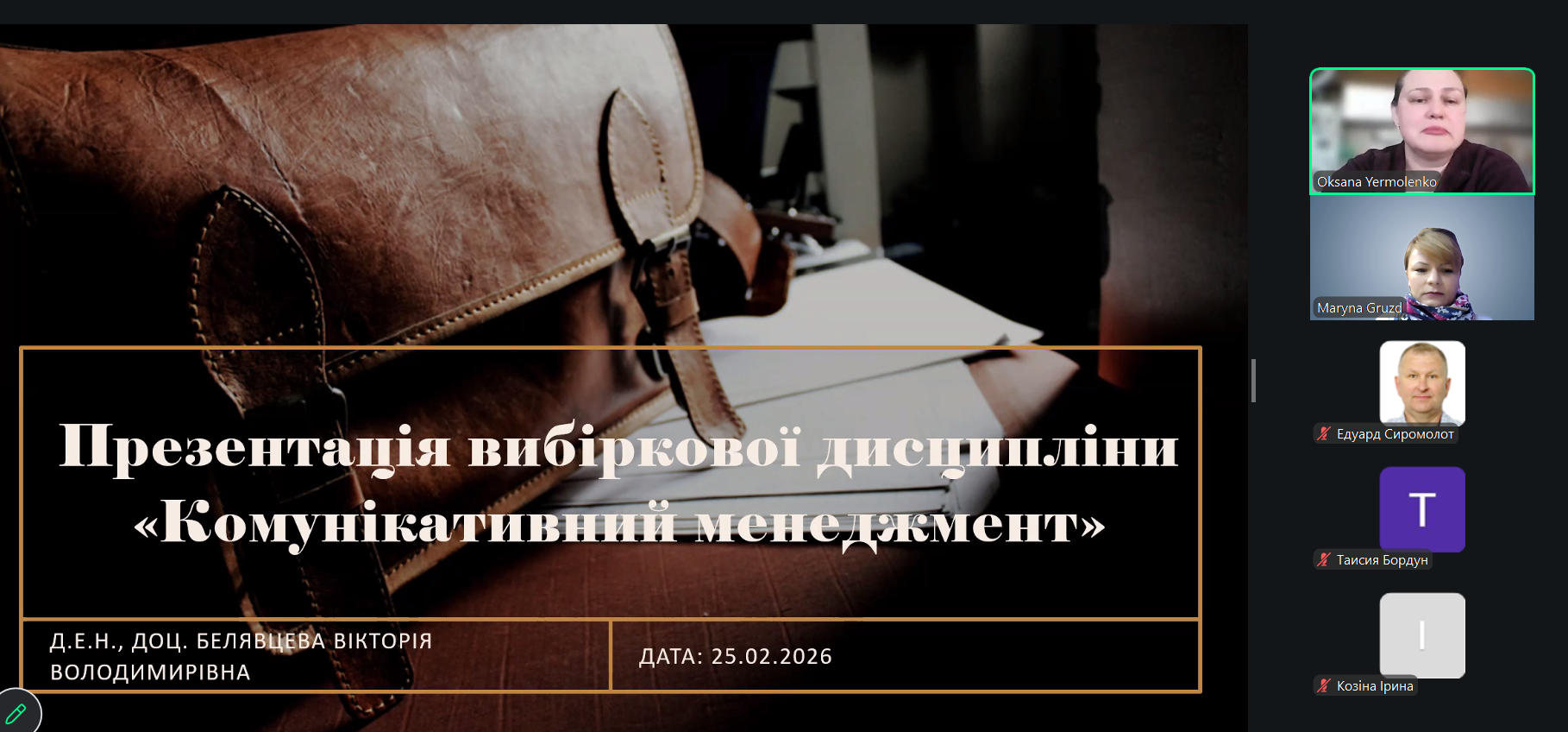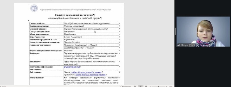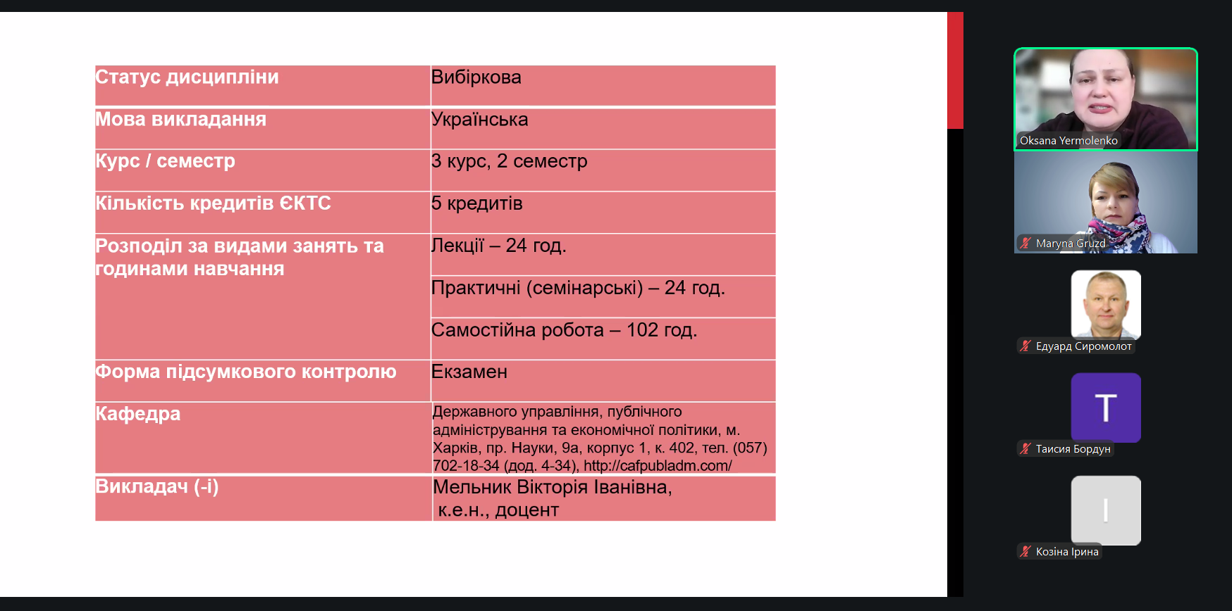 Єрмоленко Оксана, доцент кафедри державного управління, публічного адміністрування та економічної політики, презентували навчальні дисципліни щодо яких здійснюється вибір.